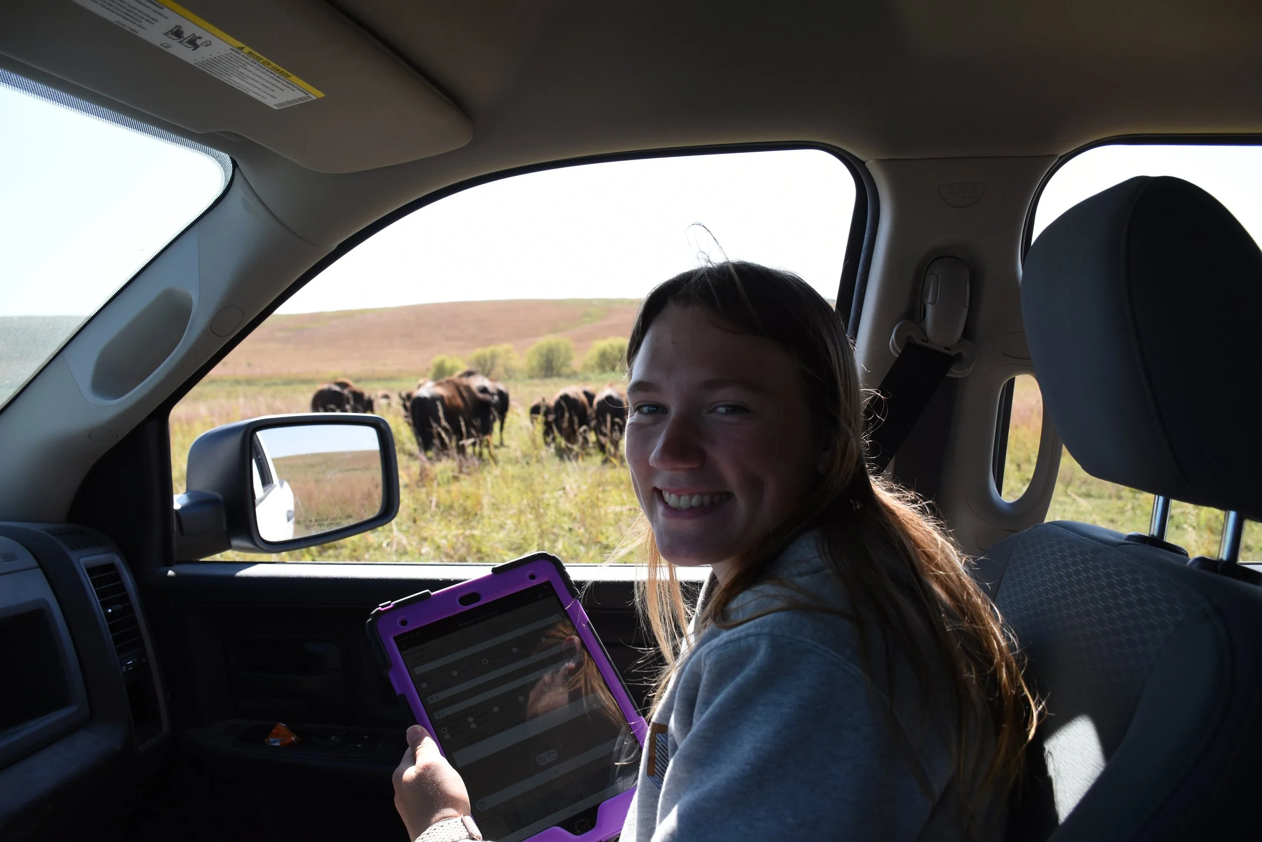 We go out once a week to do a bison and elk survey in order to keep track of herd numbers and to see how well their body condition is. By looking at the bisons body condition you can tell how healthy each individual is. We keep track of this by doing a survey on the iPad of health conditions and things to look out for.