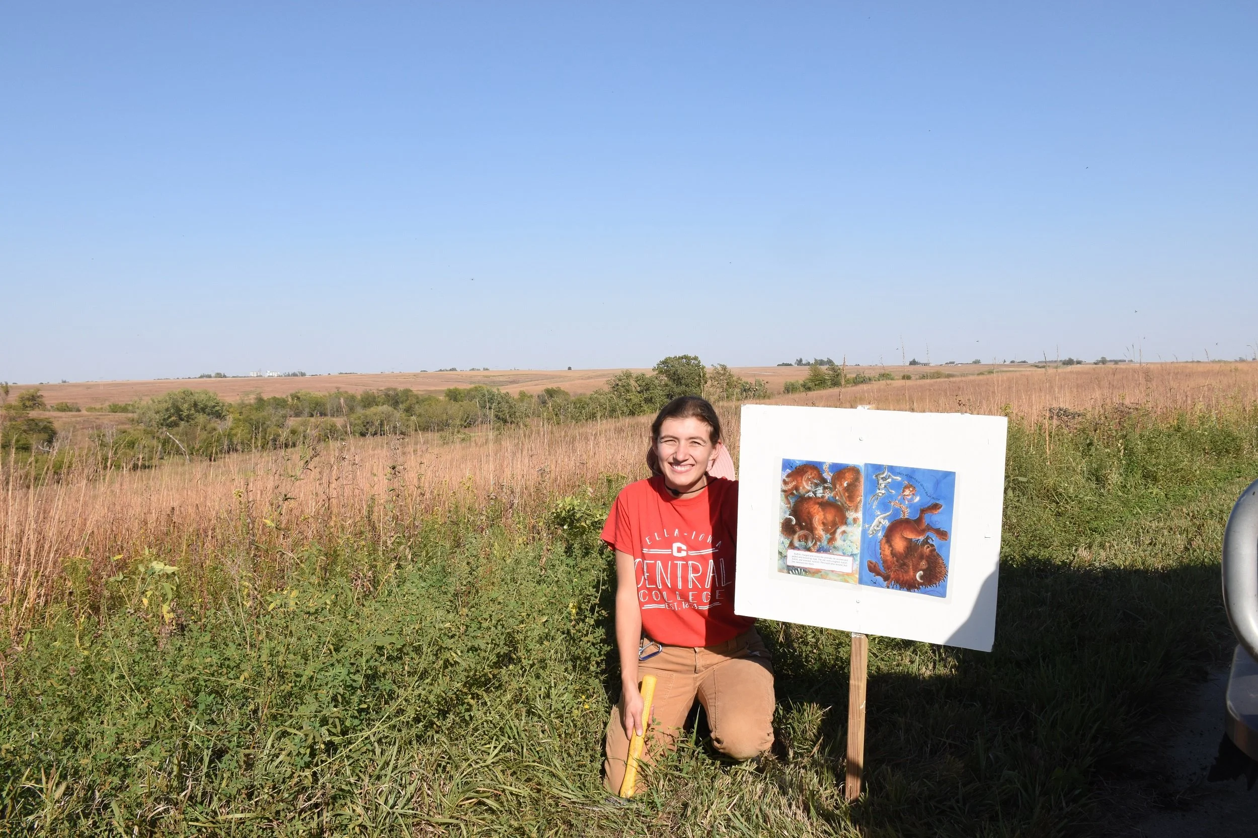 Without the ability to host classes in the Visitor’s Center right now, Nancy – the visitor services coordinator – and I have been brainstorming some fun ideas to keep the public involved and surprised when they come visit us in the prairie! With this goal I began to scope out some books in order to make Neal Smith National Wildlife Refuge’s first every Storybook Trail! Storytime with the kiddos has always been one of my favorite events. I believe that growing a child’s imagination is just as important as scientific skills! With this goal in mind, creating the trail became an all-staff teamwork event! I dug up some old signs in our maintenance building that we don’t use anymore. Evie and Scott helped me paint them before I taped on all the laminated pages. Then finally, despite the lack of rain, Evie and I persevered and installed the book signs in the dry dirt — Steve, the maintenance worker, had some tips and tricks to help us too. Now, visitors can walk the Overlook Trail, and enjoy the view of the prairie while also exploring Old Bag of Bones retold by Janet Stevens. This story is based on the Shoshoni tale “Old Man Coyote and Buffalo Power” and follows an elderly coyote, who believes himself to be just an old bag of bones. As he laments, he seeks help from a powerful bison to turn him young again. Will he learn the true wisdom that comes from age, or will he simply be the same trickster he always was?