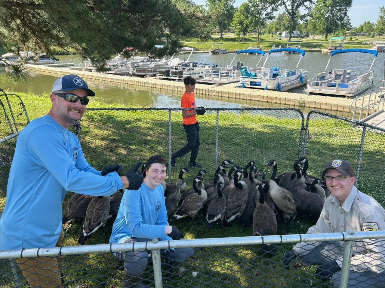 This week we assisted the Iowa DNR with their Canada goose banding program. Banding the geese allows the DNR to track migration patterns after they have been harvested. The bandings took place at Oakland Acres golf course in Kellogg, Quarry Springs in Colfax, Rock Creek State Park, and at Central College. Over the course of 3 days, the DNR banded 599 geese!