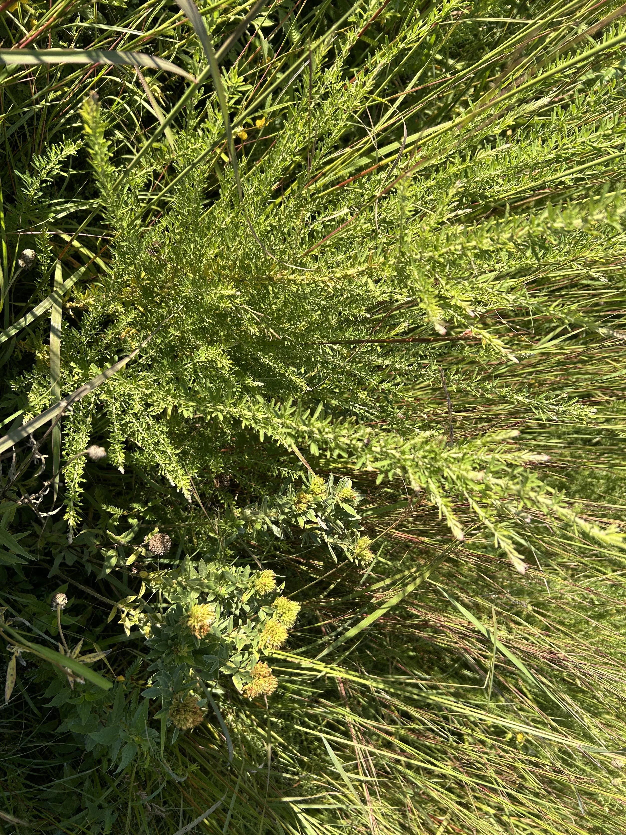 The picture is the lespedeza (left) next to it's native cousin, lespedeza capitata (Round headed bush clover, right).
