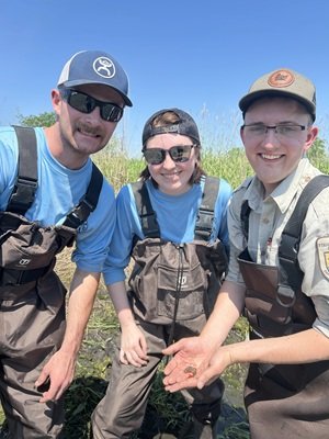 This week we assisted with a Topeka Shiner survey! Topeka Shiners are an endangered small minnow-like species that like murky bottom waterways. For Iowa this means oxbows or streams. We went out and used a net to scoop up fish from the oxbows and counted them up, which is called seining. It was an absolute blast, and we even found some other cool species like darters and big tadpoles!